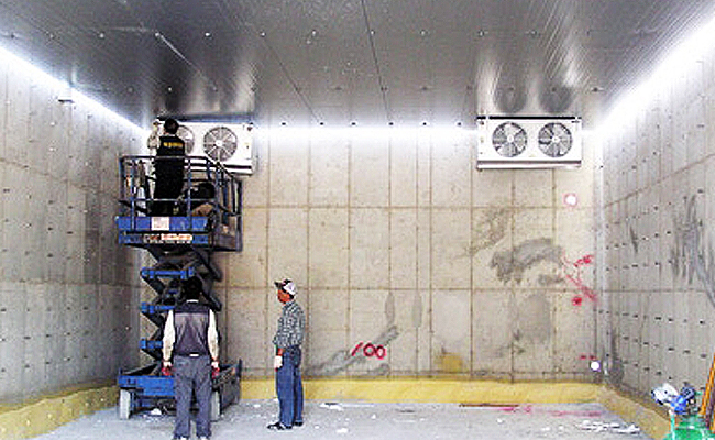 엔텍 글로벌 자체 개발 및 시공하여 입증이 확인 되어진 지열차단시스템, 복사열차단시스템을 이용하여 냉동기의 용량 증대는 최소화, 급속에 필요한 시간과 온도를 생성 할 수 있으며 보관물품의 수분 증발을 최소화 하며 분자 구조 변형을 최소화 하기 위한 시스템입니다.